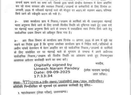 उत्तराखण्ड सरकार ने कर्मचारियों को दी बड़ी राहत, निगम और उपक्रमों के लिए 11% महंगाई भत्ता बढ़ाया